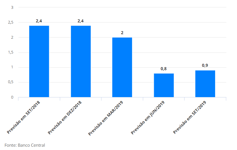 No primeiro trimestre de 2019, a economia brasileira encolheu 0,2%. Entretanto, entre abril e junho, houve recuperação uma vez que foi registrado crescimento de 0,4% nesse período.