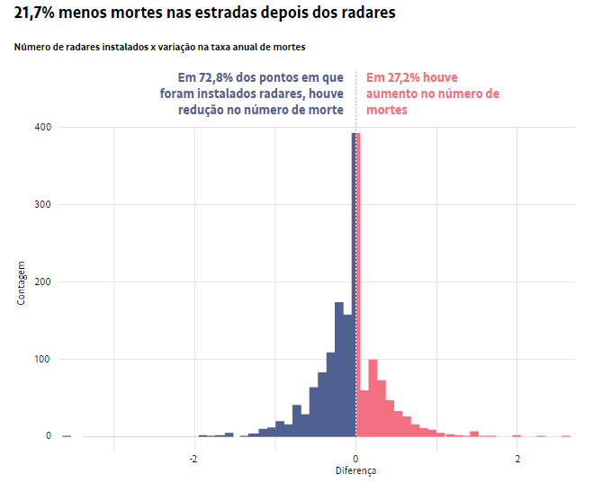 Ocorreu a redução média de 21,7% no número de mortes nos quilômetros que possuem dispositivos eletrônicos. Assim também, registrado a queda de 15% nos índices de acidentes após a instalação de radares. Os dados foram divulgados pelo Jornal Folha de S. Paulo na manhã desta segunda-feira (15).