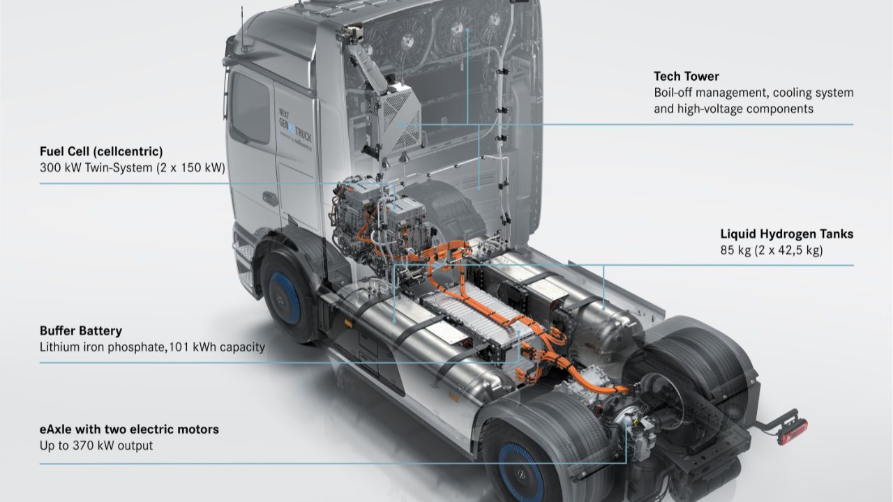 “Para além das soluções puramente bateria-elétricas, os propulsores a base de hidrogênio são cruciais para a transformação sustentável da nossa indústria“, afirmou Achim Puchert, CEO da Mercedes-Benz Trucks. “Com o NextGenH2 Truck, estamos dando o próximo passo tecnológico em caminhões a célula de combustível. Juntamente com os nossos clientes, pretendemos introduzir uma pequena série, com alta autonomia e tecnologia quase pronta para série, nas operações diárias de transporte a partir do final de 2026“, complementa.