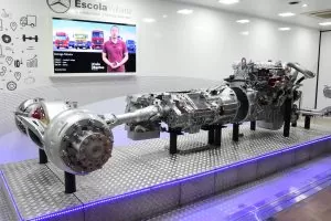 A área conta também com sete Unidades Volantes de Treinamento, sendo cinco caminhões e dois ônibus, equipados com recursos didáticos e equipamentos técnicos para treinamentos práticos, como motores e caixas de transmissão.  Somam-se ainda as parcerias da Mercedes-Benz com as entidades SENAI, SEST/SENAT e FABET e com fornecedores (Allison, Wabco, ZF, Eaton, Voith e Bosch).