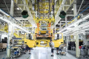 Com efeito, a nova planta surpreende os visitantes à primeira vista. As cabinas se movimentam pela linha sobre plataformas guiadas automaticamente, batizadas de AGVs (Automatic Guided Vehicle), que operam através de sensores e otimizam o trabalho de montagem. Já o abastecimento de algumas peças, diretamente na estação de trabalho, é realizado por um veículo autônomo inteligente, ou AIV (Autonomous Intelligent Vehicle), que desvia de obstáculos e circula com desenvoltura por uma via paralela à linha. O mesmo se com um robô colaborativo, que atua na montagem da chave geral do caminhão e trabalha em total sintonia com os operadores, aliviando esforços em atividades repetitivas.