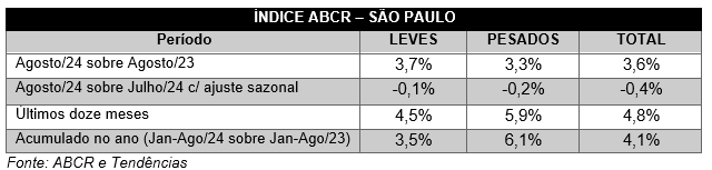 Em São Paulo, Índice ABCR cai 0,4% em agosto
