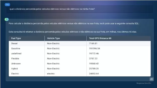 “Em outras palavras, qualquer pessoa pode simplesmente fazer perguntas sobre o negócio/frota, desde um técnico de manutenção até um motorista, gerente de frota ou sustentabilidade, CEO e departamentos como contabilidade e RH. Não há necessidade de ser um especialista em ferramentas de BI, como Power BI e Tableau, para obter uma visão holística das operações da frota.”