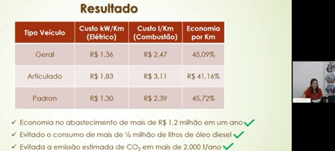 Os resultados após um ano de operação demonstraram uma redução de 45% no custo por quilômetro em comparação com os veículos a combustão, uma economia de mais de 1 milhão de reais em abastecimento e a eliminação da emissão de 2.000 toneladas de gases poluentes. Apesar do alto investimento inicial, Laura destacou que o conforto e a aceitação pelos usuários — que relatam sentir-se “flutuando em uma nave espacial” — e a economia operacional de longo prazo justificam a aposta.
