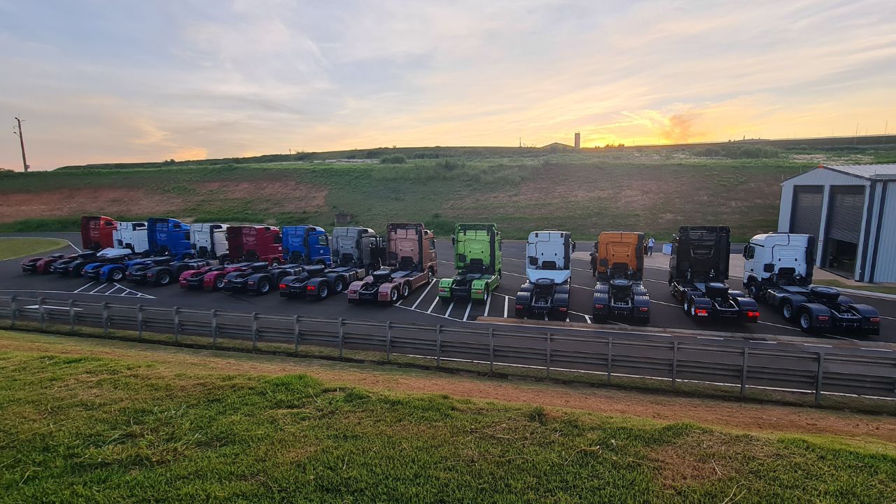 Frota com 13 unidades do Mercedes-Benz Actros Evolution estacionados no CTVI em Iracemápolis (SP) | Foto: Frota&Cia