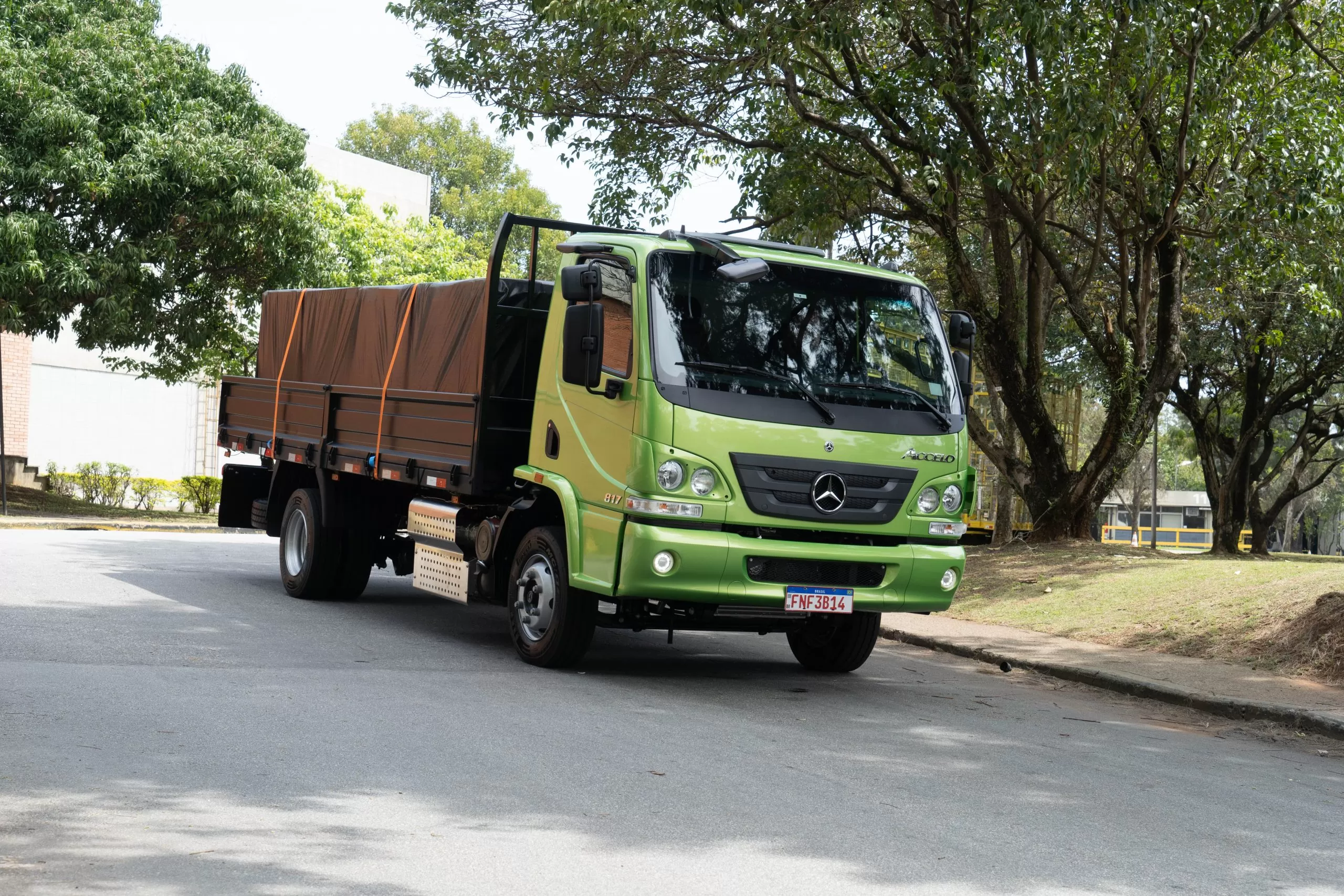 A linha Accelo 2023 traz outros aperfeiçoamentos, como o novo espelho auxiliar e frontal de aproximação, uma nova coluna de direção e um novo posicionamento da alavanca do câmbio automatizado. O teto da cabine ganhou um novo revestimento e o painel agora conta com display de 10,4 polegadas, teclas de navegação e controle eletrônico de levantamento do 3º eixo.