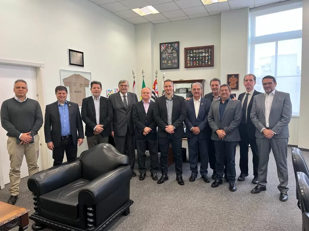 A comitiva foi recebida pelo Secretário Derrite; João Henrique, Coordenador do Centro Intregado de Comando e Controle (CICC); Dr Oswaldo Diez, Delegado de Polícia e Coordenador do PROCARGA; Dr Luís Fernando Chefe da Assessoria Policial Civil da SSP; Cel PM Pedro Luís, Chefe da Assessoria Policial Militar da SSP e Cel PM Paulo Maculevicius, Ch Gabinete da SSP.