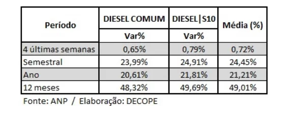 De acordo com levantamento, da NTC&Logística, utilizando dados da ANP e demais entidades, o impacto do aumento do diesel nas empresas de transporte pode ser fatal. Por isso, após anúncio da Petrobras de um reajuste de 8,87% no preço do diesel. O preço médio do combustível sairá de R$ 4,51 para R$ 4,91, aplicado às distribuidoras.