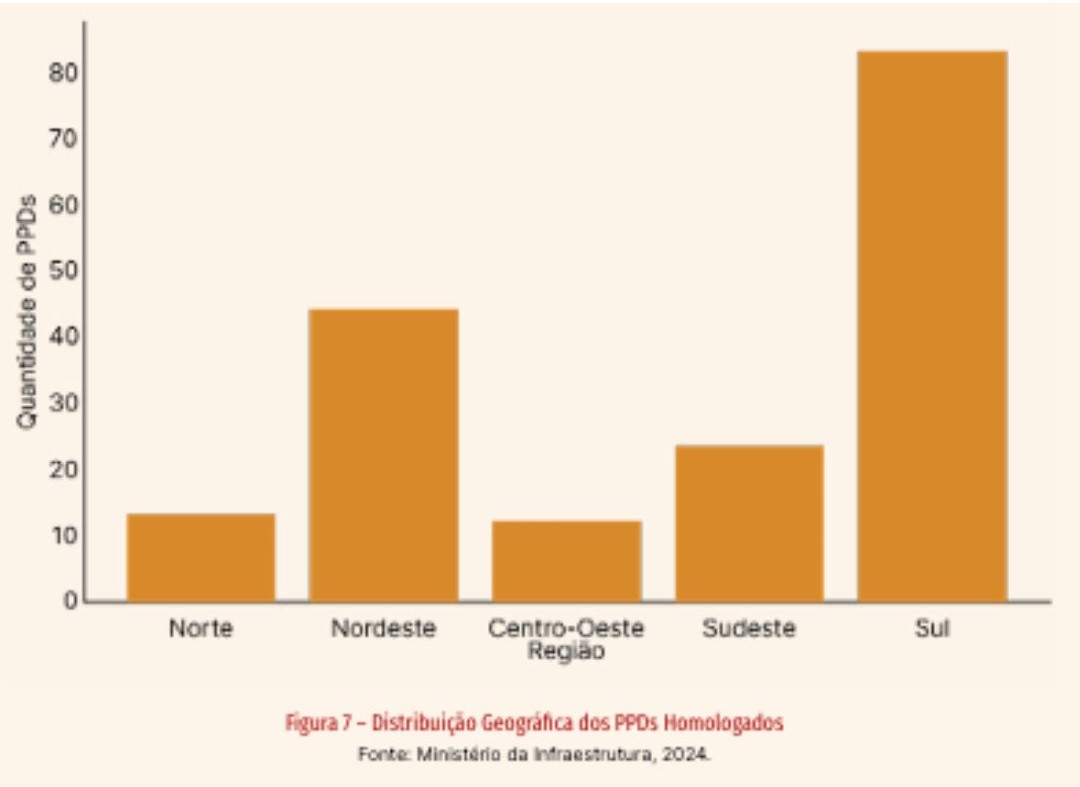Apesar da viabilidade econômica, a transição esbarra em barreiras estruturais críticas. A mais evidente é a carência de infraestrutura de recarga na região. Um levantamento do Ministério da Infraestrutura (2023) citado no trabalho mostra que apenas 9% dos corredores logísticos da região Norte possuem Pontos de Parada e Descanso (PPDs) operacionais. “A ausência de infraestrutura de apoio revela uma ‘cidadania logística de segunda classe’ para caminhoneiros amazônicos”, criticam Vieira e Moret. A figura ao lado, retirada do estudo, ilustra a dramática distribuição geográfica dos PPDs homologados no país, com uma concentração esmagadora no Sul e Nordeste.