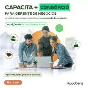 O projeto “Capacita +”, da Rodobens, está com 50 vagas abertas para o curso de capacitação Gerente de Negócios. A ideia é ajudar profissionais a dar um novo passo na carreira, com possibilidade de contratação pela empresa. As inscrições estão abertas entre os dias 04 e 15 de outubro.