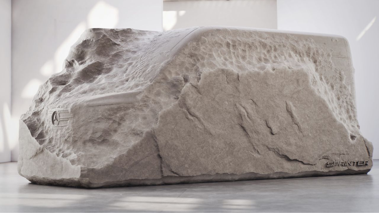 Num gesto que une arte, história e engenharia de ponta, a Mercedes-Benz Vans apresentou “THE BOuLDER“, uma escultura expressiva que serve como a primeira prévia oficial do design e conceito da próxima geração da Sprinter. A revelação, ocorrida no contexto das celebrações dos 130 anos da marca no setor de transporte, não se limitou a exibir o futuro, mas também homenageou o passado, colocando a nova eSprinter lado a lado com o veículo comercial mais antigo da marca ainda em circulação: um Benz Combination Delivery Vehicle de 1899. A obra escultórica, de aparência pétrea e robusta, simboliza a reinvenção do conceito de van, encapsulando os valores fundamentais de robustez, confiabilidade, versatilidade e durabilidade que têm definido a marca ao longo de mais de um século.