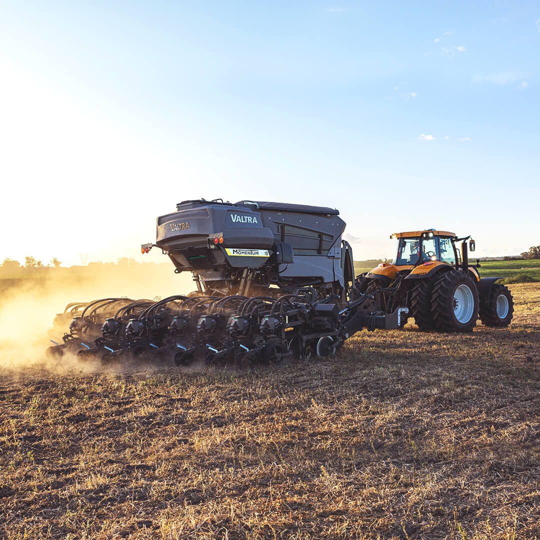 No caso da plantadeira dobrável Valtra Momentum, modelo T250 CVT, o equipamento oferece a partir de 18 linhas de plantio e traz de série a tecnologia embarcada Weight Transfer, que distribui a carga central do chassi para as pontas, proporcionando profundidade homogênea na deposição de sementes. O sistema SmartFrame apresenta o autonivelamento independente das três seções de linhas de plantio, fazendo com que a máquina mantenha todas as linhas em contato com o solo e depositando sementes na profundidade correta, mesmo em bases largas e curvas de nível. Recebe ainda o Sistema Precision Planting, que promove o controle total da população e o monitoramento completo em tempo real.