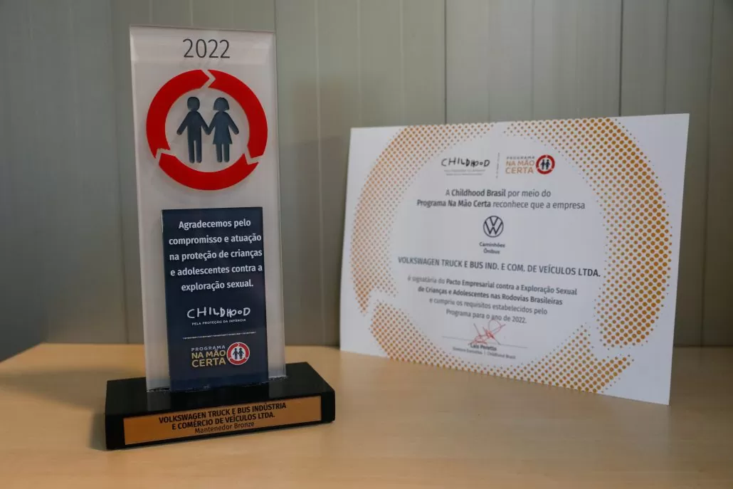 A VWCO recebeu o reconhecimento da Childhood Brasil pelo apoio ao programa Na Mão Certa